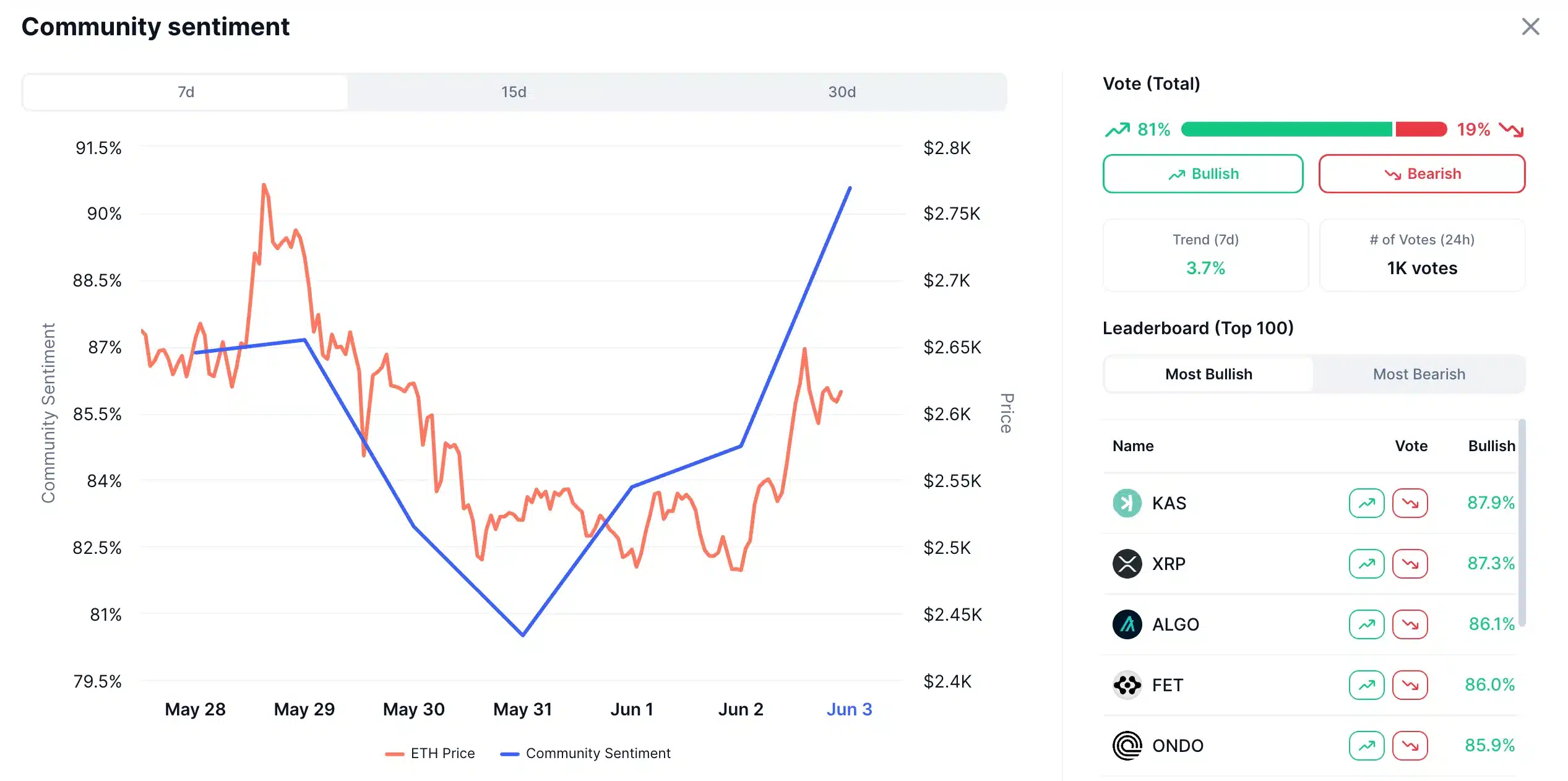 Meanwhile, Ethereum’s price momentum has been reinforced by a shift in social sentiment, which has turned bullish, per CoinMarketCap.