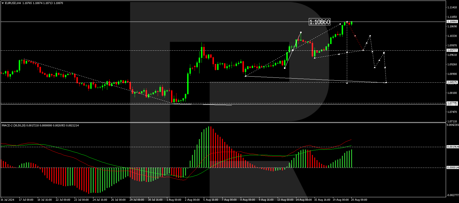 Euro vs dollar maintains its position close to a seven-month peak, trading at 1.1077 on Tuesday. The US dollar’s weakening continues, largely driven by market expectations of an imminent interest rate cut by the US Federal Reserve next month. Attention is also geared towards Fed Chairman Jerome Powell’s upcoming remarks at the Jackson-Hole symposium on Friday.