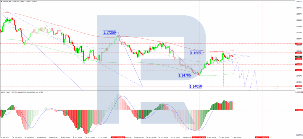 While the end of the US government shutdown removes a key market overhang, the EUR/USD pair remains capped by underlying concerns about the US economy and a still-dovish Fed outlook. Technically, the structure points to a bearish resolution. The completion of the correction near 1.1605 suggests the pair is poised for a fresh leg lower, with key downside targets at 1.1505 and 1.1405.