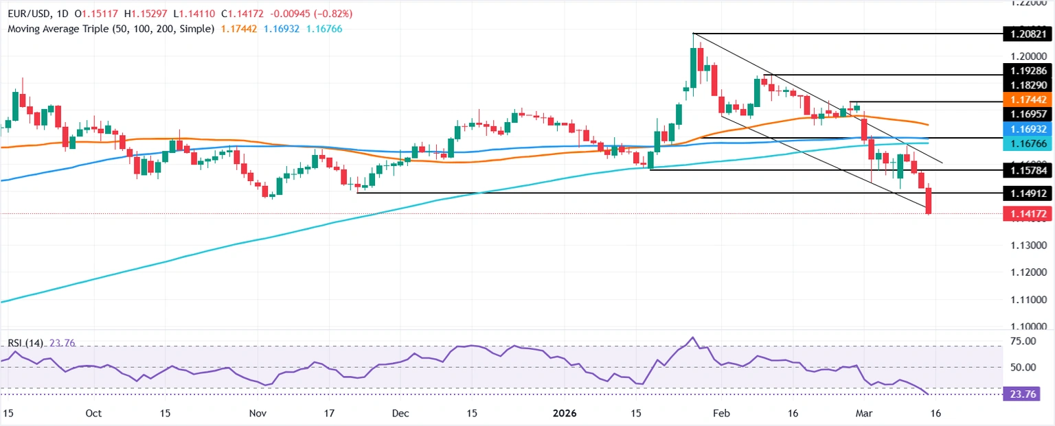 The Euro finalized the week posting losses of over 1.74% against the Greenback and 0.84% in the day. The EUR/USD posted four bearish days after falling below the 200-day Simple Moving Average (SMA) at 1.1672, turning the pair bearishly biased. At the time of writing, the pair trades at 1.1414.