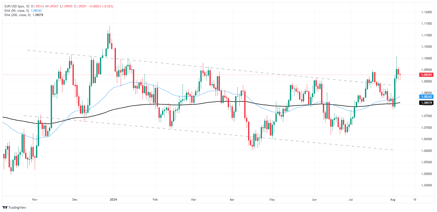 EUR/USD paddled in a tight circle on Wednesday, churning just above the 1.0900 handle as Fiber traders take a breather from recent volatility sparked by a misprint in key US data last week. EUR/USD flubbed a bullish dash for 1.1000, leaving bids hung out to dry.