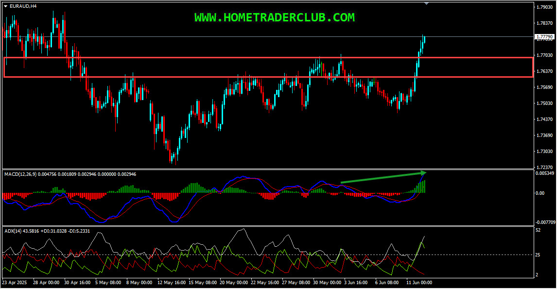 EURAUD H4(4 Hours) Chart Analysis – Higher Highs, ADX Indicator, Resistance Breakout