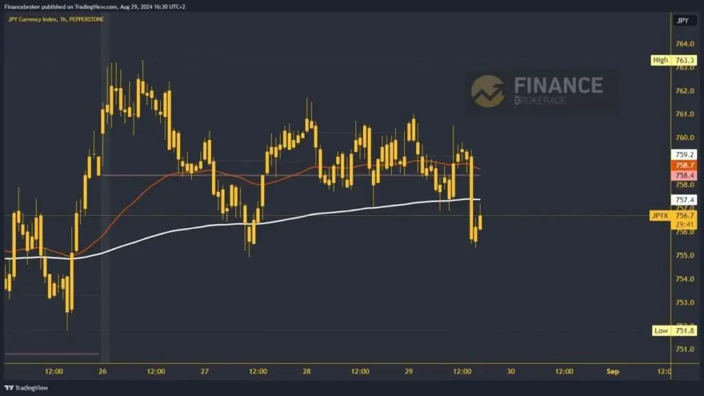 This week, we have seen a slight bearish consolidation in the yen index. Today, after the news about US inflation, the index suddenly returned to support at the 755.3 level. The data was positive for the dollar, which caused all other currencies to start retreating. The yen did the same, retreating below the EMA 200 moving average. Now, we have to go back above if we want to continue with the previous lateral consolidation.