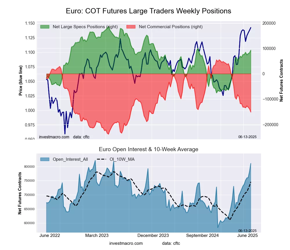 The latest COT data is updated through Tuesday June 10th and shows a quick view of how large market participants (for-profit speculators and commercial traders) were positioned in the futures markets. All currency positions are in direct relation to the US dollar where, for example, a bet for the euro is a bet that the euro will rise versus the dollar while a bet against the euro will be a bet that the euro will decline versus the dollar.