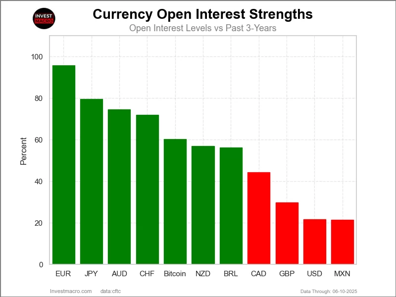 Currency Data Highlights this week include the Euro and the British pound sterling seeing stronger speculator positioning that has pushed the overall net positions to multi-month highs.