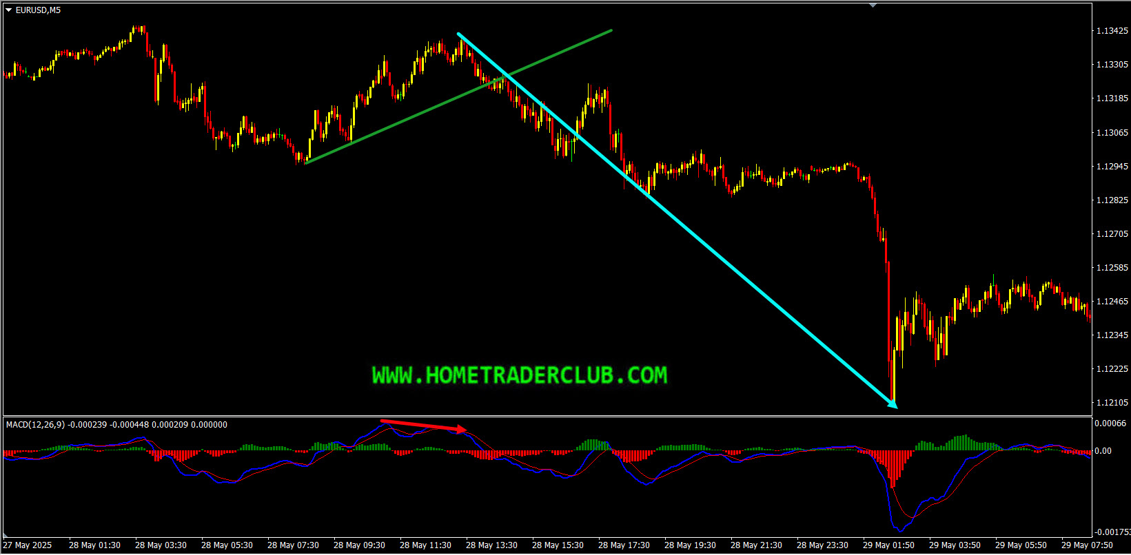 On the M5 chart, the market provided us with various facts supporting the bearish view. The price which was moving higher created a bearish divergence between the first high that has formed at 1.13338 and the second high that has formed at 1.13403 based on the MACD indicator, which we may consider as evidence of bearish pressure. The price then moved lower and broke below the most recent uptrend line. We may consider these as facts provided by the market supporting the bearish view and also there we no signs opposing this bearish view. Then as you can see in the image below how the price moved lower further and provided a wonderful move to the downside.