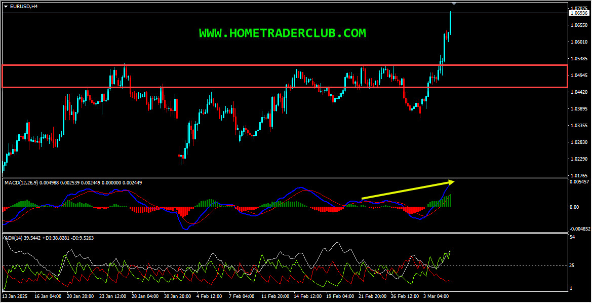 EURUSD H4(4 Hours) Chart Analysis – Higher Highs, ADX Indicator, Resistance Breakout
