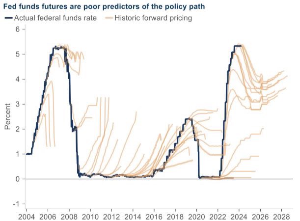 “That is: all the unpredictability and volatility comes from the Fed committee. They just pick rates out of a hat based on months-old data and political incentives.”