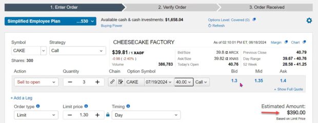 Option trading and covered call writing, in particular, have become increasingly popular over the past several years. As our membership has been growing more than ever, we have a large number of Blue Collar Investors who are relatively new to the process. This article will analyze a real-life covered call trade example with The Cheesecake Factory (Nasdaq: CAKE), taken from one of my portfolios