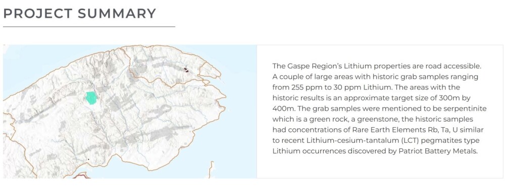With respect to the company’s Quebec Project, this excerpt from the company website gives some details about it.