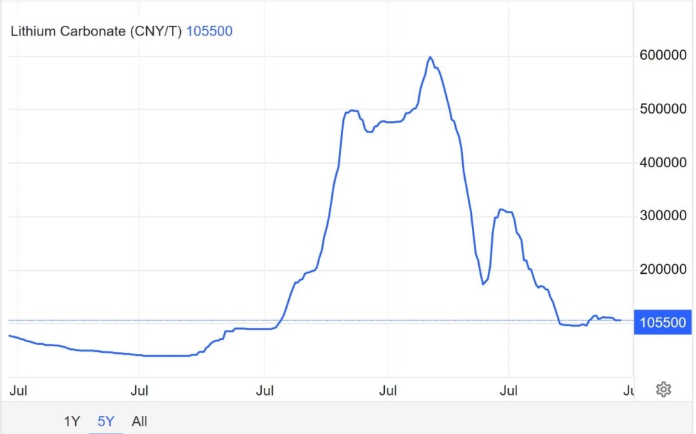 The chart implies that perhaps after some further basing action, lithium prices will start higher again in a new bull market.