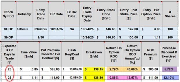 Real-life cash-secured put example with Shopify Inc. (Nasdaq: SHOP): 9/30/2025 – 10/24/2025
