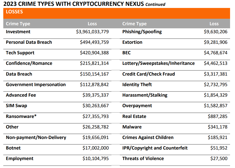 • According to a new report from the FBI’s IC3, crypto investors lost nearly US$6 billion in 2023.