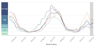 And here is a graph I’m following concerning COVID in wastewater as of February 6th:This appears to be a leading indicator for COVID hospitalizations and deaths.