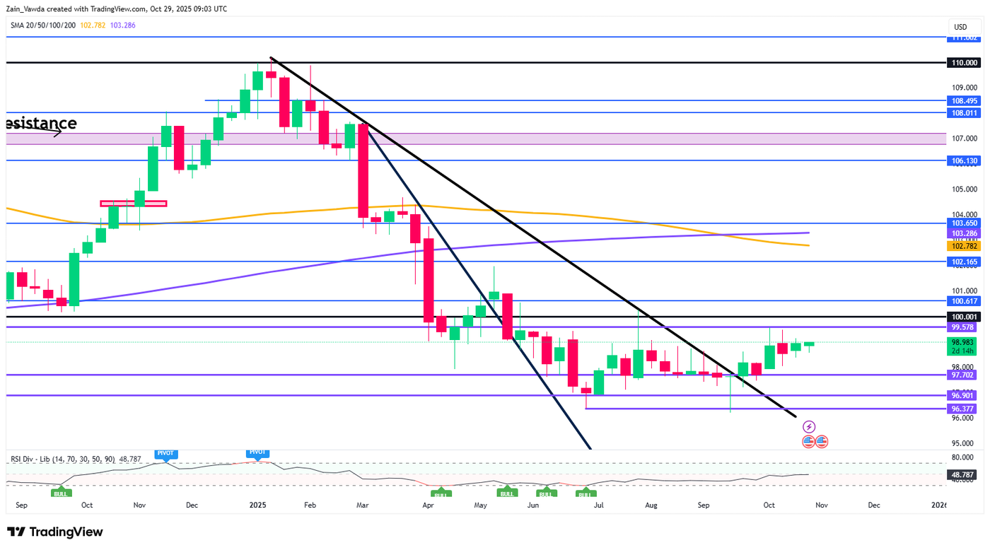 US Dollar Index (DXY) Daily Chart, October 29, 2025