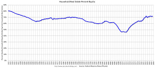 Household percent equity (as measured by the Fed) collapsed when house prices fell sharply in 2007 and 2008.