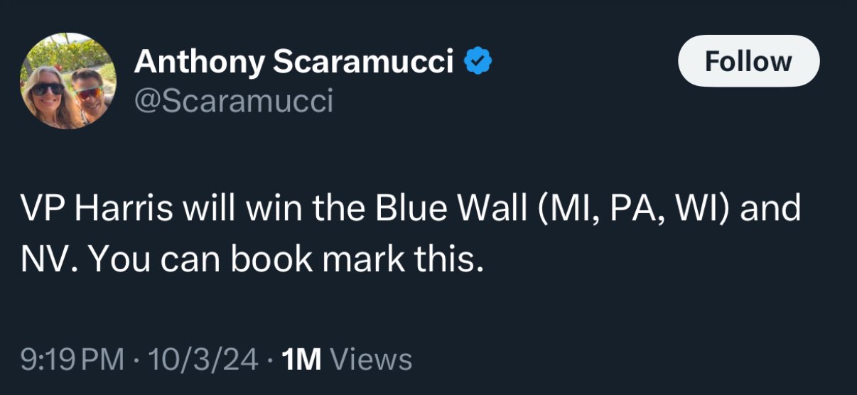 Not a good day for Kamala crypto supporters like Anthony Scaramucci and XRP’s Chris Larsen.