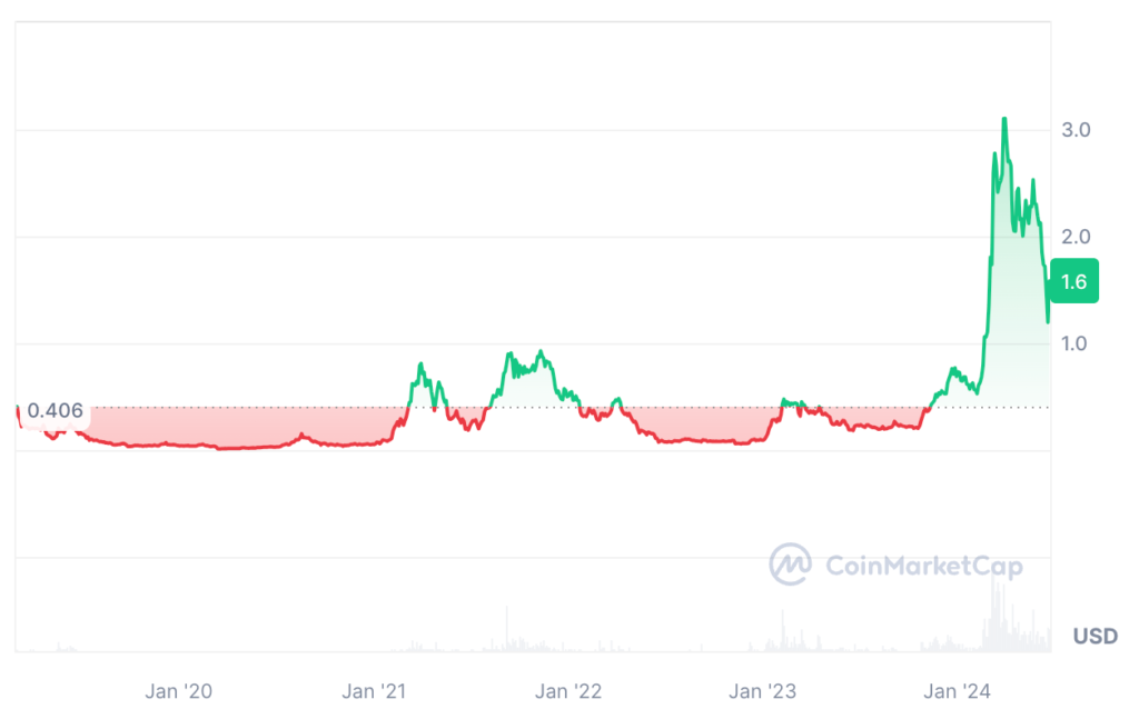 PricePrediction analysts think that in 2024, Fetch.ai coin’s minimum price can drop to $2.86 (+78%), while at its maximum FET will rise to $3.25 (+103%).
