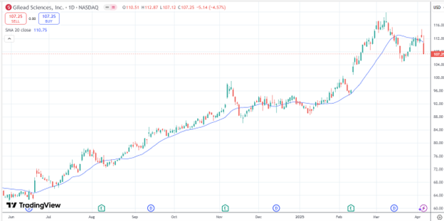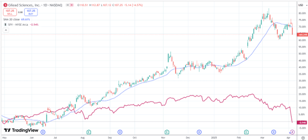 Gilead Science (GILD) is an example of a stock with strong relative strength: