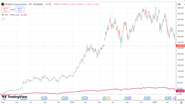A shorter-term trader may look at relative strength over the past three months and see that NVIDIA (NVDA) has poor relative strength…