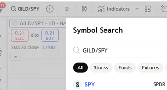 To chart the price ratio of GILD over SPY, we can simply type “GILD/SPY” as the symbol in TradingView: