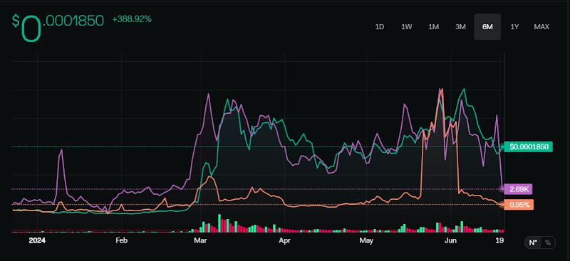 Data from LunarCrush, a social media analytics tool shows that, in the last six months, FLOKI’s social interactions skyrocketed by 320%, and its social dominance was up 109%. Social Dominance measures the “share of voice” across social media, as per LunarCrush.