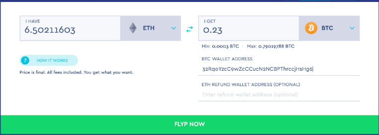The simplicity of Flyp.me’s process is one of its most appealing aspects. Here’s how users can swap cryptocurrencies on the platform: