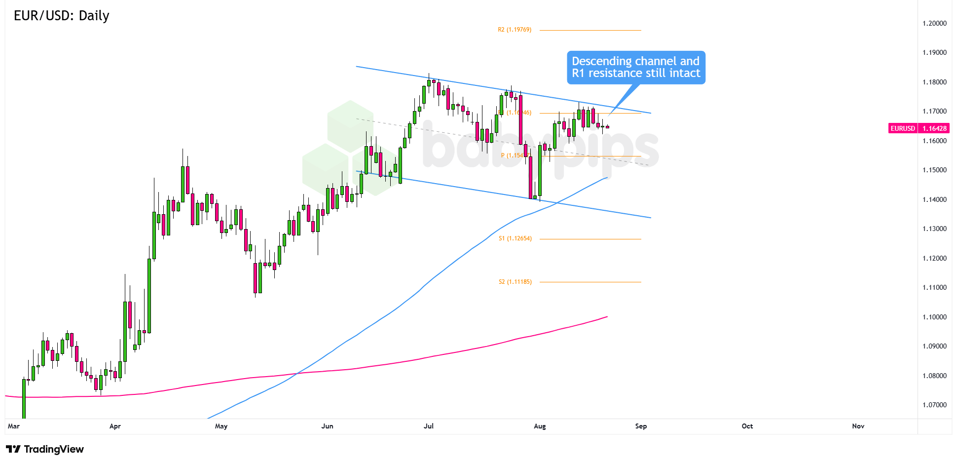 Attention now turns to Powell’s remarks on Friday. Any signal of future easing could reset pre-Jackson Hole positioning and send the dollar sharply higher.