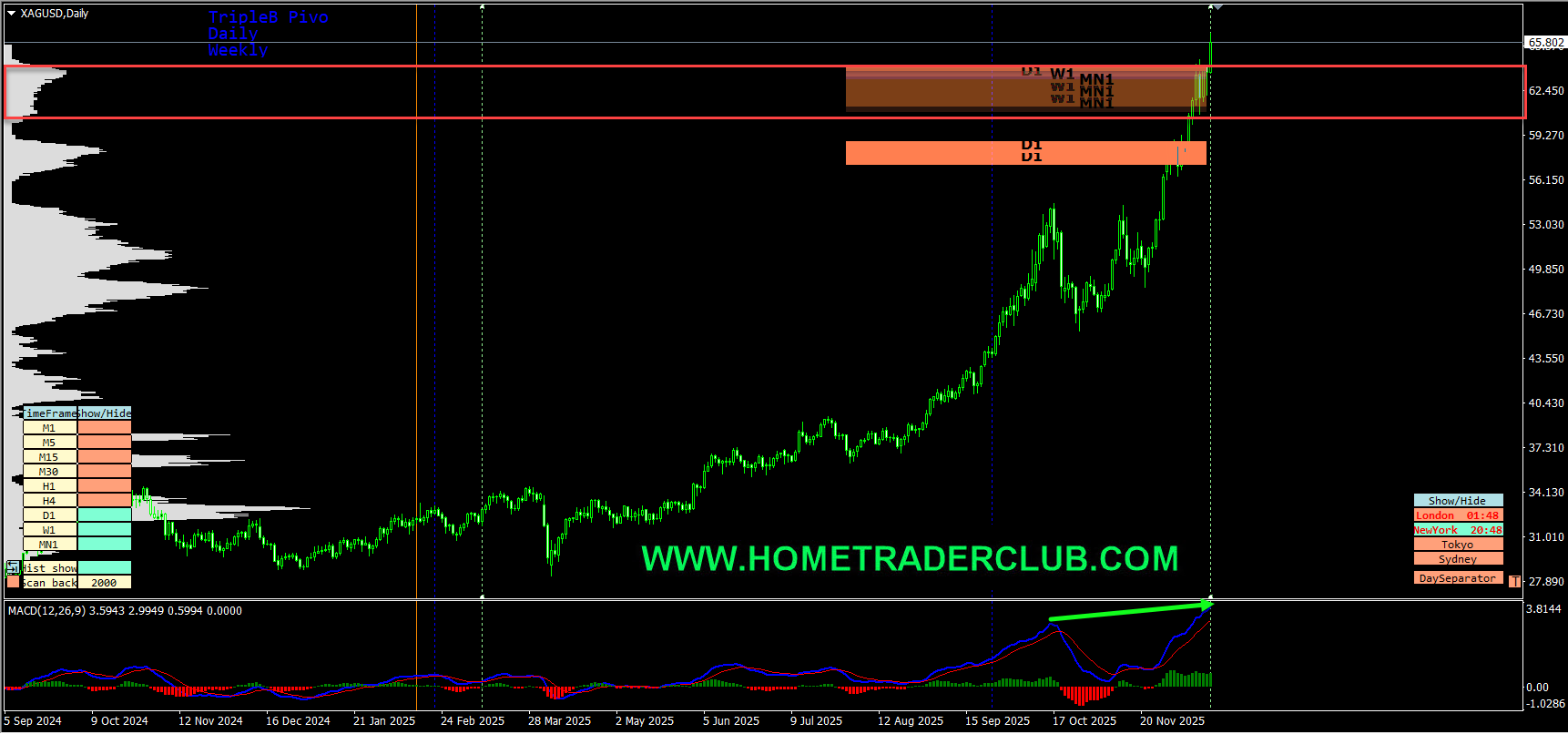 On the H4 chart, we have a strong bullish momentum and also currently it looks like a correction is happening. So everything looks good for the bulls here as well. In addition to this, we have three key support zones that has formed based on the volume profile zones of the KTLI indicator and the Triple B Pro pivot levels. Until these three key support zones shown in the image below (marked in green) holds my short term view remains bullish here and I expect the price to move higher further after retraces.