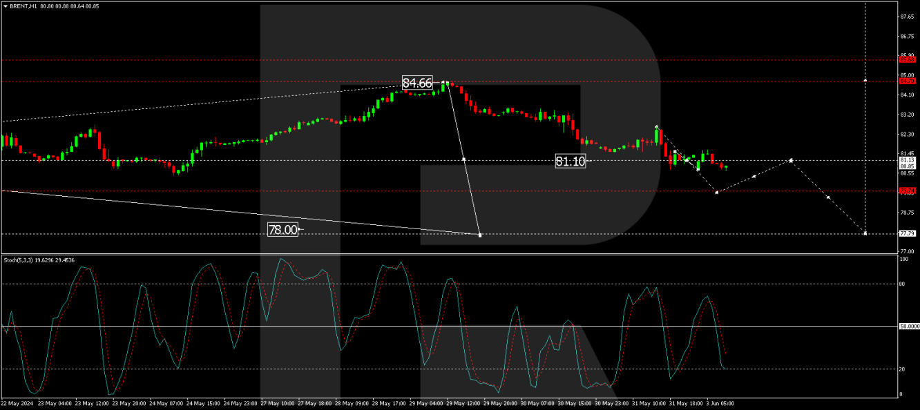 On the H1 chart, the correction phase to 157.47 has concluded, and a downward impulse towards 155.44 is underway. Following this, a correction to 156.45 (testing from below) could occur, potentially leading to a further drop to 155.22, the primary target. This scenario is technically confirmed by the Stochastic oscillator, whose signal line is positioned above 80 and is anticipated to drop to 20.