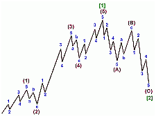 All waves are constructed internally of impulsive and corrective waves and ultimately all waves will be part of a larger wave pattern. Therefore, within a five-wave move higher that is labeled wave 1, waves 1, 3 and 5 (the impulse waves) will be constructed of five internal waves. These internal waves will be of “one lesser degree” to the larger wave 1. Also, the larger wave 1 may continue to develop as a five-wave move higher itself. These larger waves are of “one higher degree”.