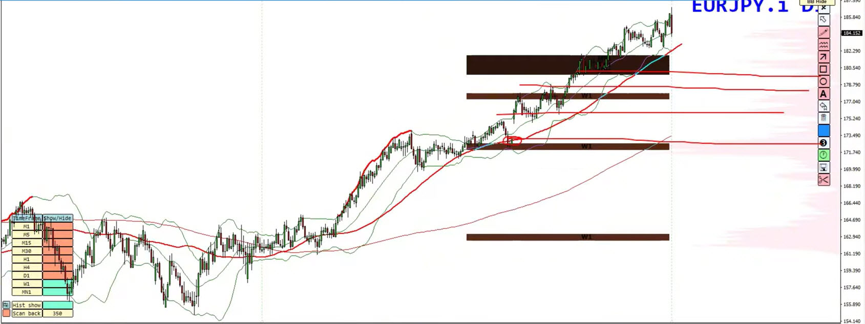 EUR/JPY presents a very different picture compared to the previous pairs.