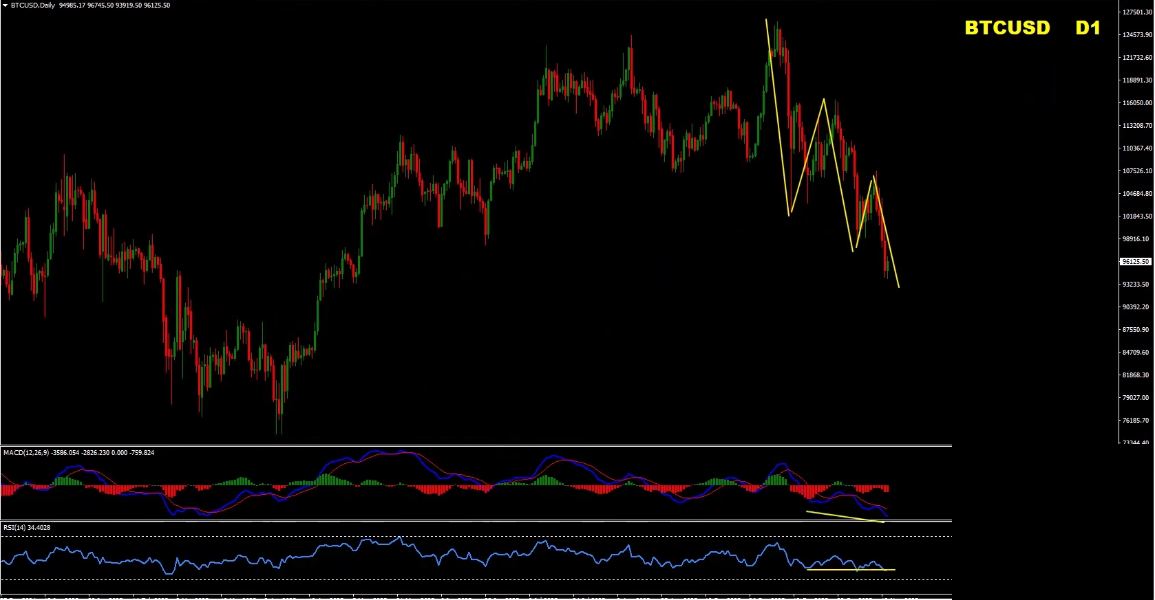 Bitcoin’s recent drop should not surprise regular viewers — we highlighted the bearish divergence weeks ago. The long-term bullish cycle is not finished, but the current environment is dominated by downside corrective pressure.