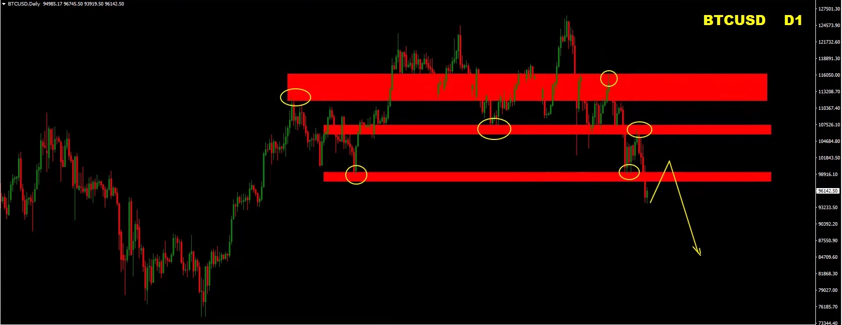 1️⃣ $98,000–$99,000 – broken support