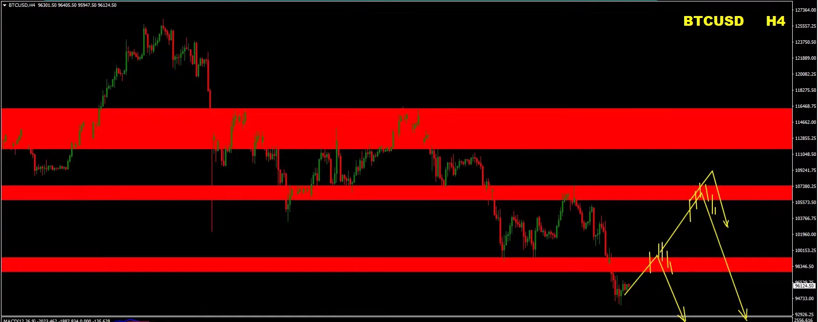 Broken support levels are now acting as resistance. Three main zones remain relevant: