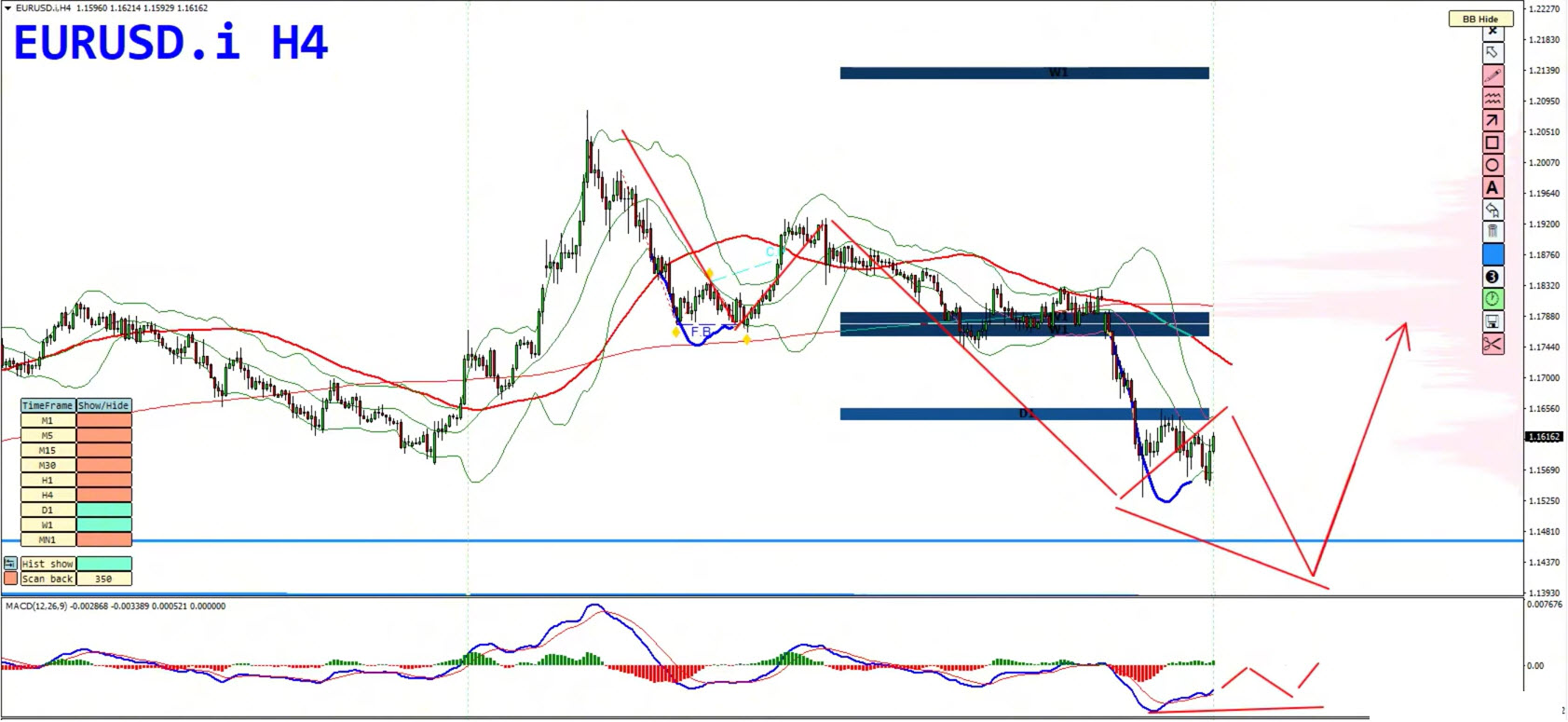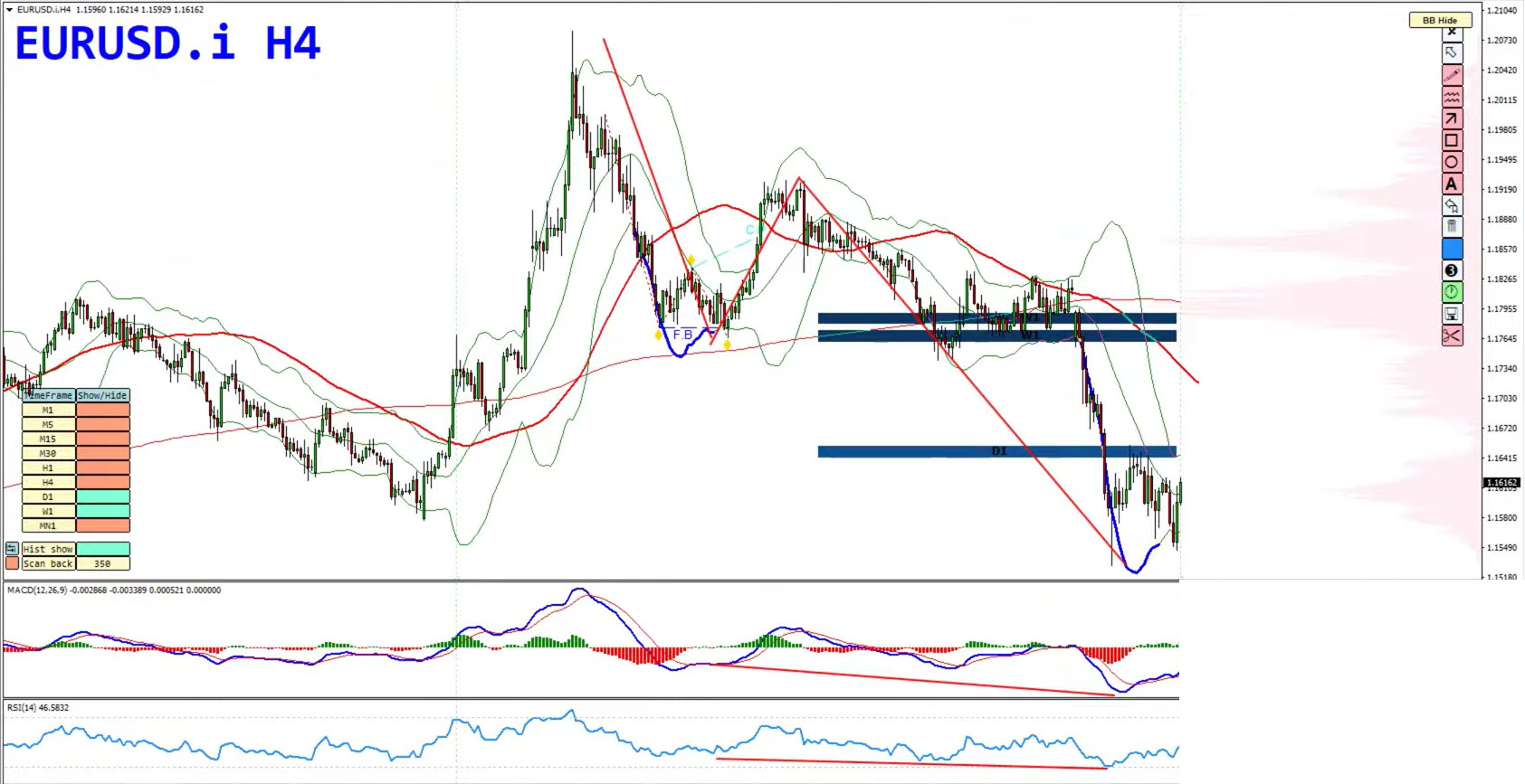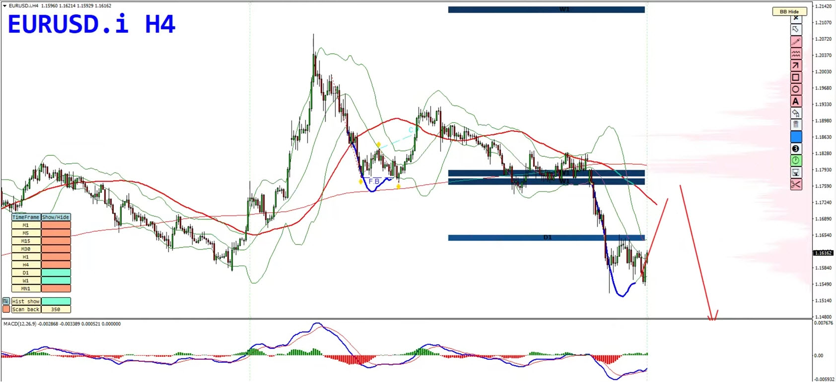 Traders should also watch for hidden bearish divergence (lower highs on price with higher highs on the MACD histogram), which would further support downside continuation.
