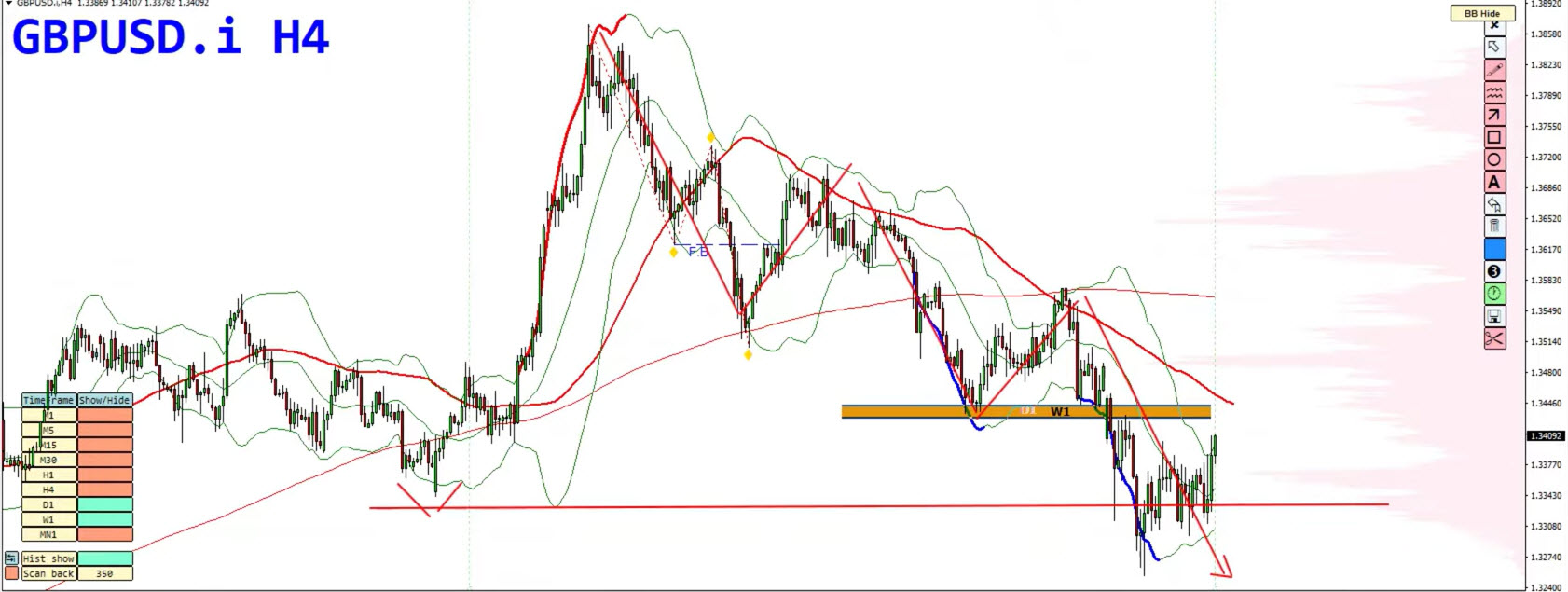 Lower highs and lower lows forming on the 4-hour chart