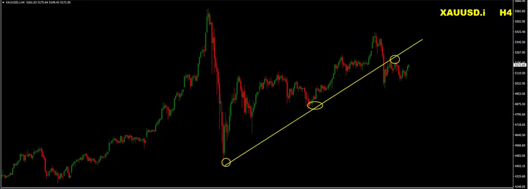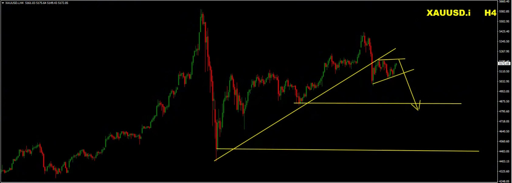 A less likely scenario would involve gold forming higher highs and higher lows, signaling short-term bullish momentum.