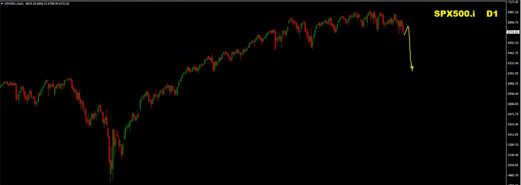 The long-term bull trend may remain intact, but a deeper correction toward 6500–6100 appears possible before the next major rally.