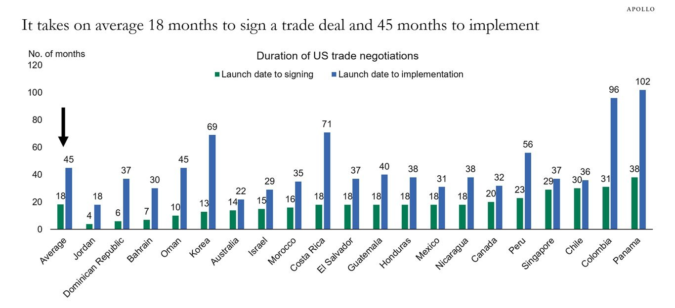 Torsten Slok at Apollo poured cold water on hopes of getting trade deals done in a timely manner.