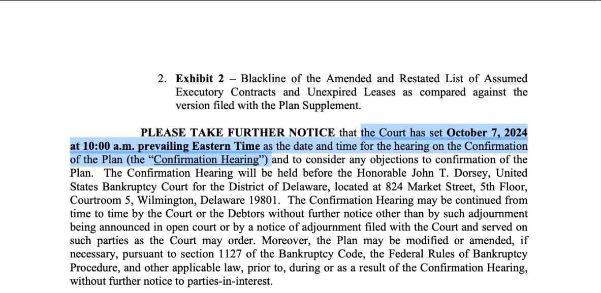 However, this was soon refuted — according to the latest data from the bankruptcy case materials under Chapter 11, the court is still studying a compensation plan.