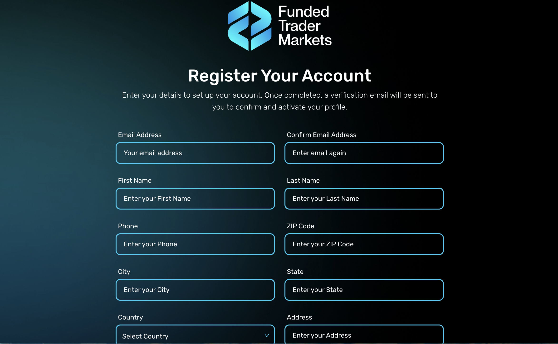 Visit the official Funded Trader Markets website fundedtradermarkets.com. To begin the registration process, click the “Get Funded” or “Join Now” button.
