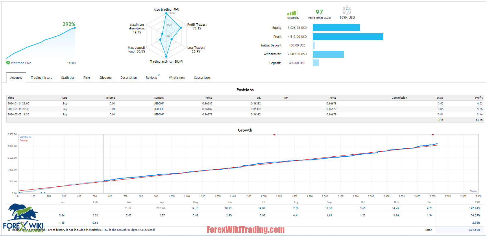 - Profitability: Potential for high returns, as shown by consistent account growth.