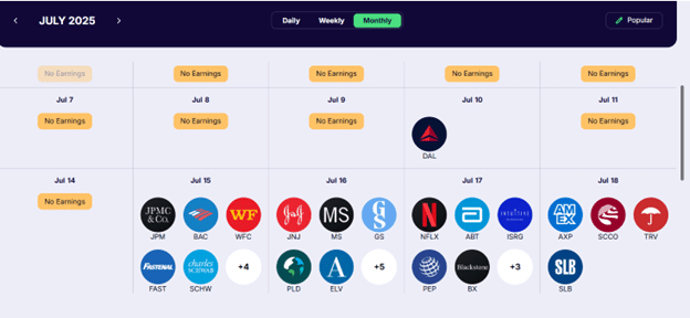 When it says July 8 has no earnings, it means that July 8 has no “popular earnings”.