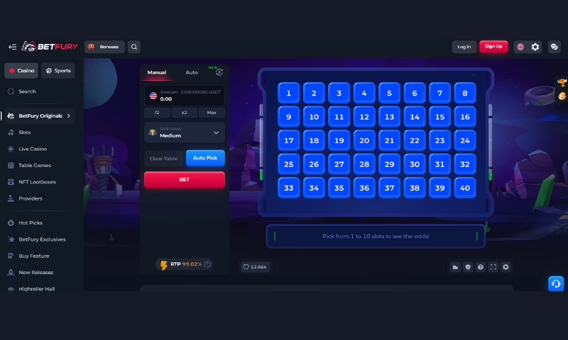 Where to play: You can play Keno at BetFury and Rollbit, two trusted platforms, that offer this lottery-style game with exciting payout potential.