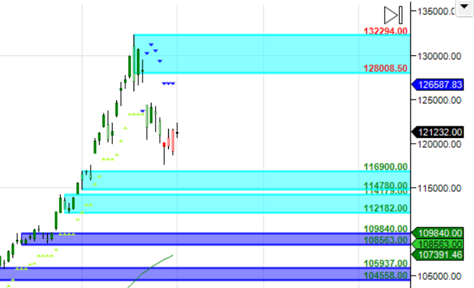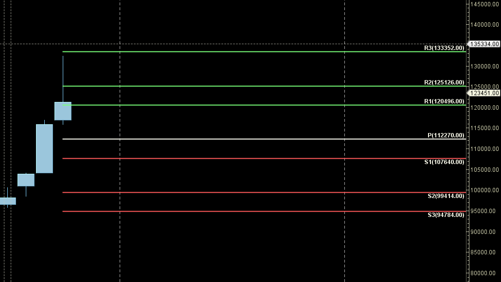 Weekly Resistance: 121607,122306,123006,123709,124413