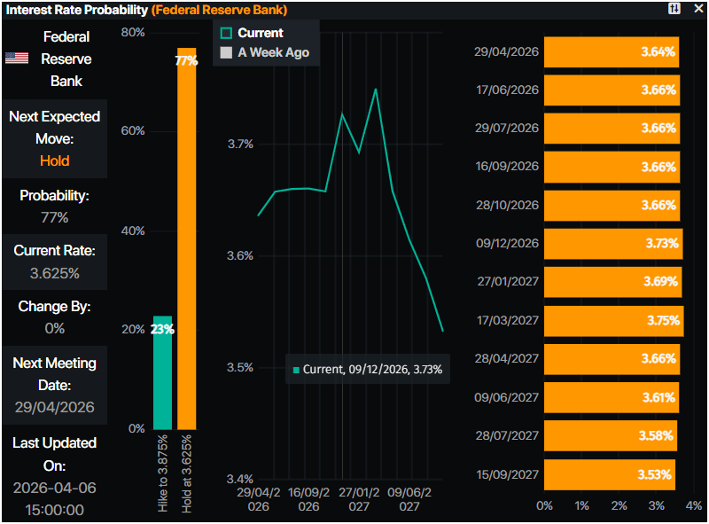 Consequently, expectations that the Federal Reserve (Fed) will cut rates are none, according to data from Prime Market Terminal, which reflects that the Fed funds rate will remain in the 3.50%-3.75% range, steady in 2026.