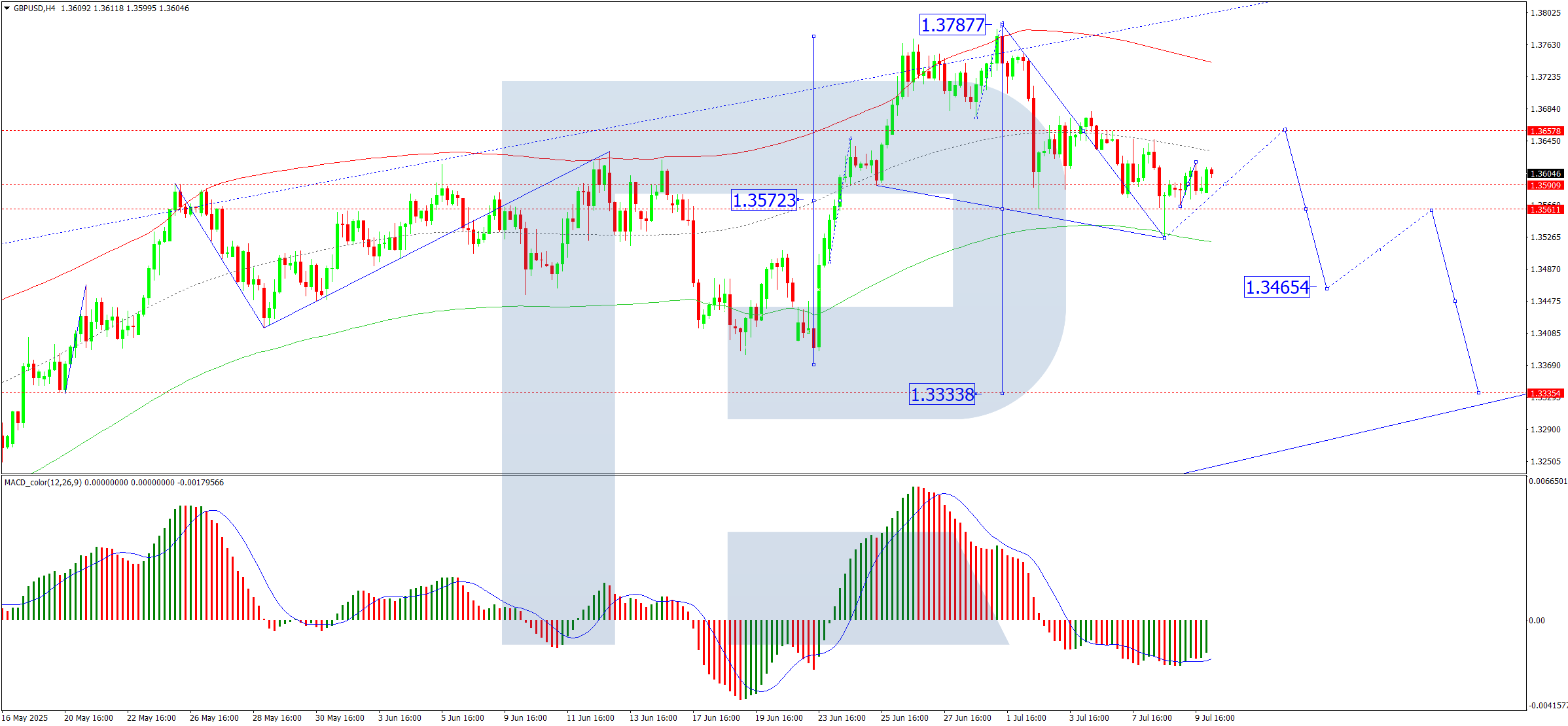 - A breakout upwards could extend the correction to 1.3657, after which a fresh decline towards 1.3520 is expected, with a longer-term target at 1.3465