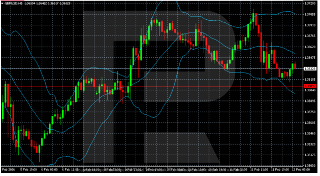 On the lower H1 timeframe, a local recovery from 1.3580 is visible, but the structure remains neutral to bearish. The price is trading within the 1.3580–1.3650 range. The Bollinger Bands’ midline acts as short-term resistance. A sustained move above 1.3660 would open the way towards 1.3700. A move back below 1.3600 would increase the risk of a retest of recent lows.