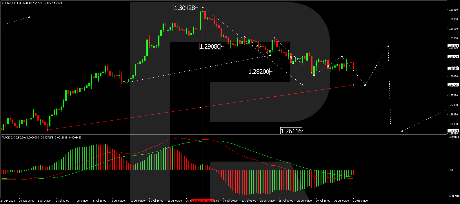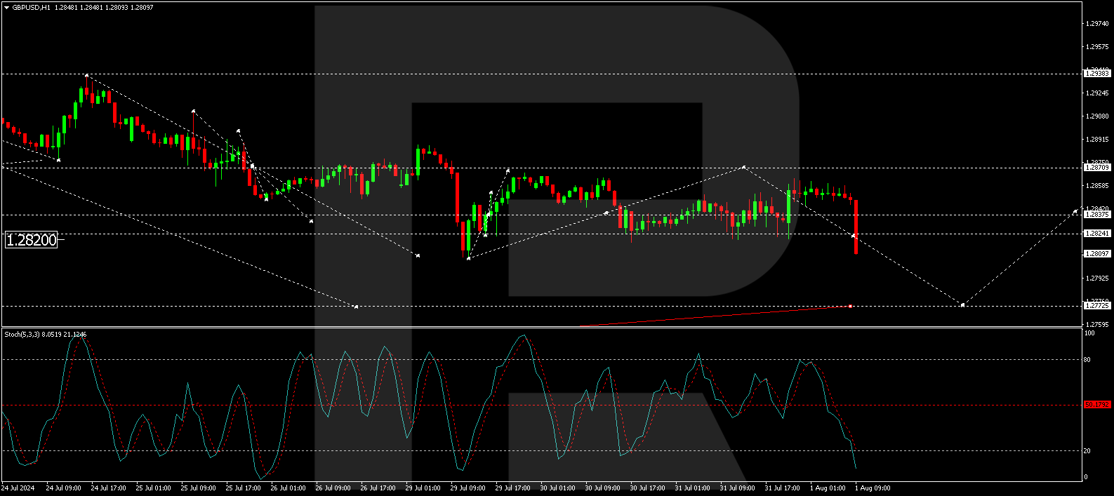 The British pound sterling continues to decline steadily against the US dollar. The GBP/USD pair is trending towards 1.2848.